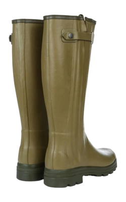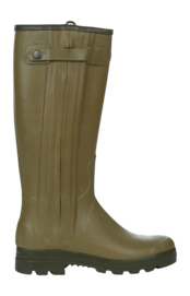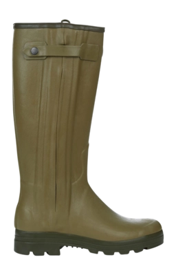 Dieser Gummistiefel von der Qualitätsmarke Le Chameau hat einen Reißverschluss mit dem Sie den Stiefel kinderleicht an- und ausziehen können. Der Stiefel aus Naturkautschuk ist 100% wasserdicht und mit weichem Kalbsleder gefüttert. Durch die sehr gute Passform können Sie den ganzen Tag bequem in den Stiefeln laufen. Das grobe Profil der Sohle gibt Ihnen auf jedem Untergrund einen guten Halt. Daher eignen sich diese Stiefel für eine Vielzahl von Aktivitäten, sowie: Jagen, Angeln, Wandern oder für landwirtschaftliche Arbeit. Dieser Stiefel ist ein echter Allzweckschuh der Ihre Füße trocken und warm hält..